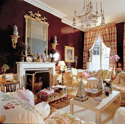 In Houston, New Orleans designers Holden and Dupuy use a French chandelier in the living room. The designers used my four favorite elements to add atmosphere and the finishing touch: rug, draperies, sconces, and light fixture. Remove one of these four elements and the room would not be as pleasing or beautiful.